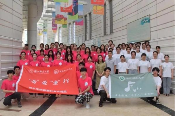 7月7日至7月22日,浙江师范大学音乐学院暑期社会实践队兵分两路,分别去往金华金东区和温州泰顺县开展暑期社会实践活动。这些青年在两周时间内用“以艺为体,以史为魂”的结构方式,通过红色课堂、红色研学、红色游戏、红色歌曲、红色舞台等多维度党史学习活动,将党史学习与艺术经典巧妙结合,融党史学习与音乐之美于一体。 十五载乡村儿童教育,聚爱心助力乡村振兴。站在中国共产党成立100周年的时代重要节点上,浙师“音”爱“童”行暑期实践队员们在金东区与泰顺县等地以游戏、红歌、舞台演出等方式,为儿童传授音乐知识,让儿童在了解党的光辉历程的同时,能够用自己的思维看待历史,用自己的方式展示对国家对党的热爱之情。 01 红色课堂学党史