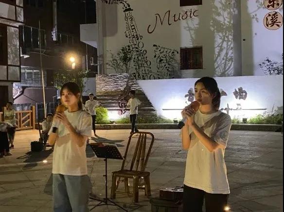 在金东社区,队员们和社区民间民乐团进行交流演出,探寻民间艺术。队员们和村民们一起观赏了民间艺人的婺剧演出,随后共同演唱了婺剧《刘金定送夫君双眼流泪》,让现场观众感受到了浓郁的“金华风情”。在东溪乡,实践队举行“薪火相传”路演,在实践过程中依然牢记“薪火相传”的使命,通过红歌把火种洒向泰顺东溪,用传唱红歌的方式铭记、珍惜、弘扬、传承学习党史。