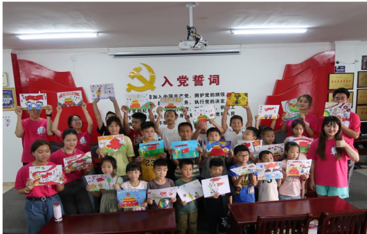 此外,实践队开展了绘画与制作立体剪贴画等系列。最终的成品让队员们看到了他们独特的创意,每一组的成果都远远超过了样品,充满了活泼的灵气。对党和国家的敬仰,都体现在一笔一画之中。每个孩子都聚精会神地参与其中,炯炯有神的目光中闪烁着对知识的渴望。