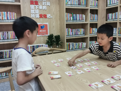 队员们充分考虑儿童心理发展特点,积极对社区儿童进行党史教育,为孩子们精心设计并制作了一款根据“翻一翻”游戏改编的“党史对对碰”原创卡牌小游戏,卡牌分为9个板块:党史篇、科技篇、英雄篇、筑梦篇、人民篇、疫情篇、发展篇、长征篇和军队篇。每个版块有10张卡牌,包含各类党史知识与相应答案。以新颖的方式为社区儿童的党史教育注入新活力。