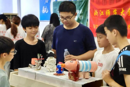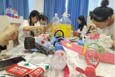 队员们深入余姚市黄家埠镇开展以“加强生物多样性保护,助力碳达峰”为主题的实践活动,带领孩子们发挥奇思妙想,将在村子里收集的废品手工制作成各式的装饰品玩具。队员开展“变废为宝”环保艺术展,为孩子们讲述环保课程,并进行绿色主题墙体绘制,发放环保手册,向当地居民传播环保相关知识,让“绿水青山就是金山银山”的理念深入人心。