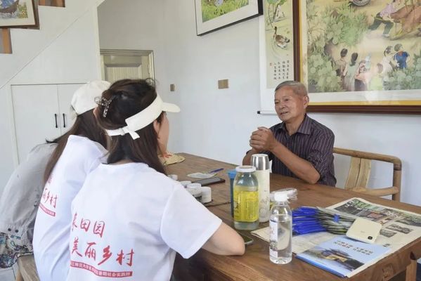实践队员头顶烈日 穿梭在余东的乡野间 通过人物访谈发放问卷等形式进行调研 发现乡村建设所面临的痛点 并进行集中讨论 提炼改造乡村建设的可行性对策