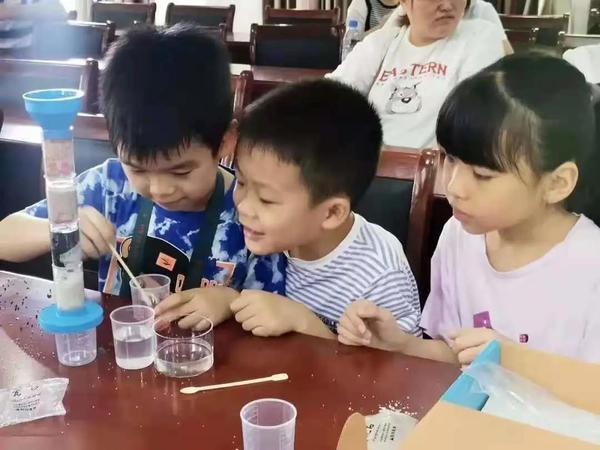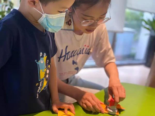 幼儿对多种材料和工具进行操作,制作红色文化课程相关物品,如制作与红军相关的创意“粢饭团”、讲述南湖红船故事的麦秸贴画、承载百折不挠与团结互助精神的草鞋,让幼儿感受手工乐趣,体验红色精神,推动红色文化的传承与发展;皮影戏、扭秧歌、化身小虎队大闯关等融红色教育于阅读、表演、游戏等,形式多元,趣味横生,激发儿童对红色文化的兴趣。 感悟红色精神,赓续红色基因。“童心向党,关爱护航”暑期社会实践队紧扣红色文化主题,讲好红色故事,融合专业优势,落实地方红色教育,播撒理想信念之种,助推家国情怀代代传。