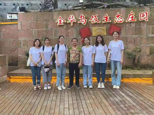 第一站,实践队来到了金华下裴村。通过与村妇女主任郑丽娟的交流,队员们了解到,村内的网络基础设施建设正稳步推进,数字化渐渐地融入了村民们的生活之中。在村网格员郑明艳的带领下,实践队队员参观了金华乌饭生态庄园。村民们表示他们正在积极尝试通过电商将金华乌饭这项非物质文化遗产推广出去。