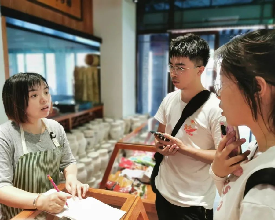 3.调研进行时 实践队员紧扣“嘉兴红色基因对人民幸福感的作用”这一主题,探讨调研方案,设计问卷,制定访谈提纲;选取当地社区、商场、旅游景点等人员密集区为调研地点,采访人群涵盖男女老少、各行各业,其中包括老党员、教育工作者、企事业单位员工、外来务工者、个体户等。调研结束后,实践队员积极配合,互相交流调研结果,整理总结得出结论,撰写调研报告。 队员们用脚步丈量嘉兴南湖区 深入群众聆听他们的心声 了解嘉兴市民的幸福指数 仅仅用了5天时 共回收有效问卷481份 街头访谈报告16份 进行专项采访4次 立于南湖之畔,溯源红色基因 经管学子切身体悟嘉兴市民的生活幸福感 十五天的社会实践 十五天的酸甜苦辣 都将成为每位实践队员最宝贵的回忆