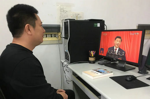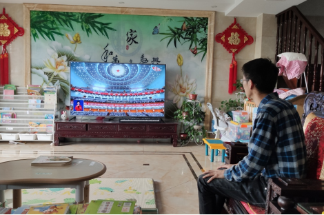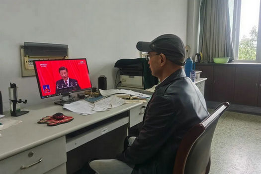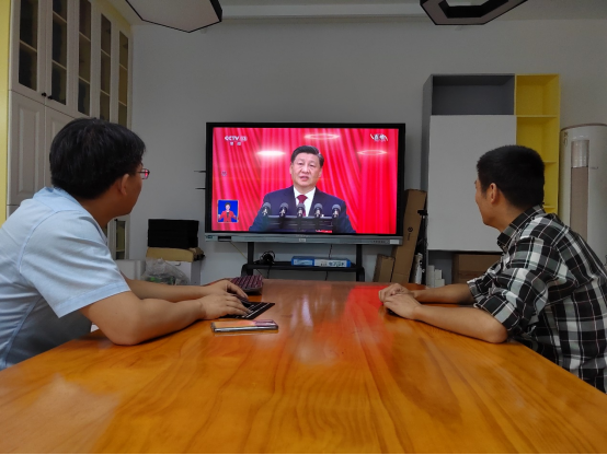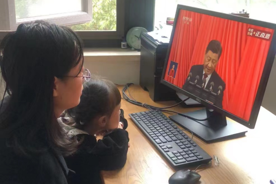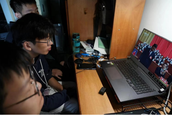 学院教工在办公室、生活区收看