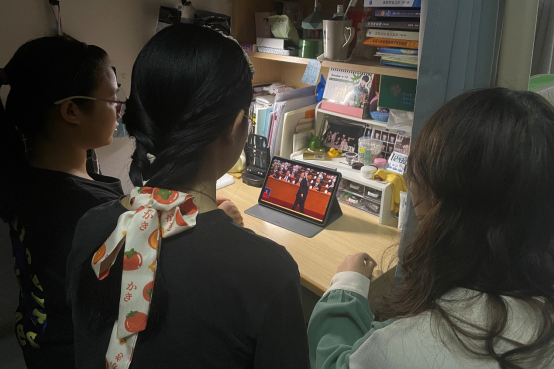 学生在寝室、实验室、图书馆收看