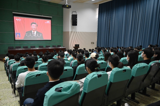 10月16日上午10时,举世瞩目的中国共产党第二十次全国代表大会在北京人民大会堂隆重开幕,习近平总书记代表第十九届中央委员会作报告。 浙江师范大学物电学院党委组织全体师生收听收看大会直播。浙江师范大学物电学院党政领导班子、教工在院党员之家集中观看,全体在校学生党员在学院一楼报告厅集中观看。其余师生或集中或分散在办公室、实验室、生活区、寝室等场所收看二十大开幕盛况,深入学习领会党的二十大精神。 师生集中收看