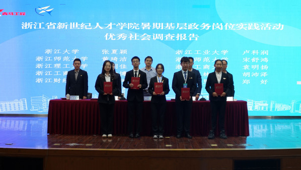 陆耀庭表示,浙江是中国革命红船起航地,金华是其中的一方红色热土,陈望道、邵飘萍、施存统等中国共产党人的事迹承载着光辉闪亮的历史记忆,是鲜活的价值观、形象的教科书。陆耀庭希望学员们坚定理想、坚守初心,怀抱梦想、脚踏实地,敢想敢为、善作善成,追随红色足迹,紧扣忠实践行“八八战略”,秉承“高尚、高远、求真、求实”的院训精神,不负时代,不负韶华,将自己的青春绽放在全面建设社会主义现代化国家的火热实践之中,唱响“我在窗口写青春”最强音。 会议对浙江省新世纪人才学院暑期基层政务岗位实践活动优秀社会调查报告和先进个人进行表彰。浙师大融媒体中心 许沁雯 摄 会议对浙江省新世纪人才学院暑期基层政务岗位实践活动优秀社会调查报告和先进个人进行表彰,同时号召广大青年积极投身社会实践,在社会课堂中受教育、长才干、做贡献,在观察实践中学党史、强信念、跟党走。