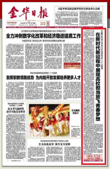 金华日报:在新时代新征程中展现高校担当放飞青春梦想 |
