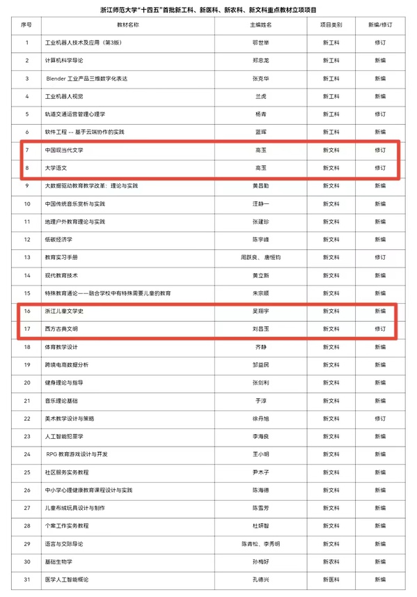 浙江师范大学人文学院4部教材入选省普通本科高校“十四五”首批“四新”重点教材建设项目 |