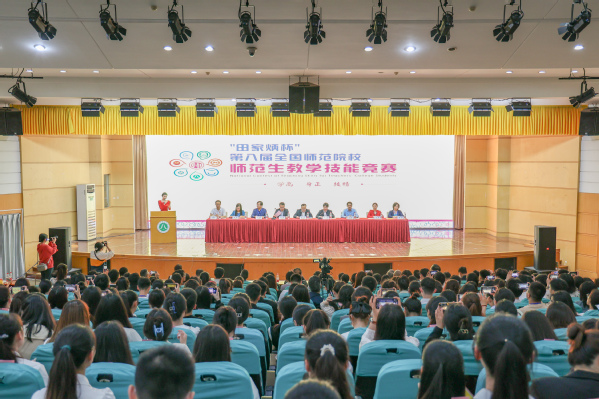 4月14日至16日,“田家炳杯”第八届全国师范院校师范生教学技能竞赛决赛在浙师大举行。这是教育部等八部委提出“强师计划”以来首次开展的面向未来基础教育优秀教师的教学大赛。来自全国167所师范院校的988名选手参加大赛,其中294名选手参加决赛,最终角逐产生一等奖102名、二等奖192名。浙师大参赛选手斩获6个一等奖、2个二等奖,学校一等奖数目位列全国师范院校第一。 “田家炳杯”第八届全国师范院校师范生教学技能竞赛颁奖典礼。浙师大融媒体中心 冯一蕊 摄