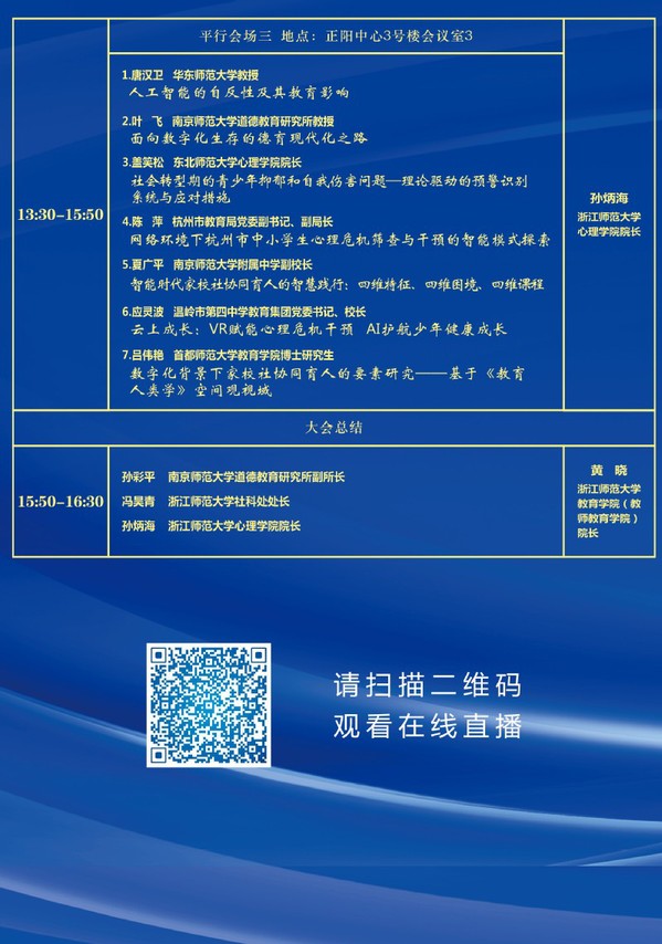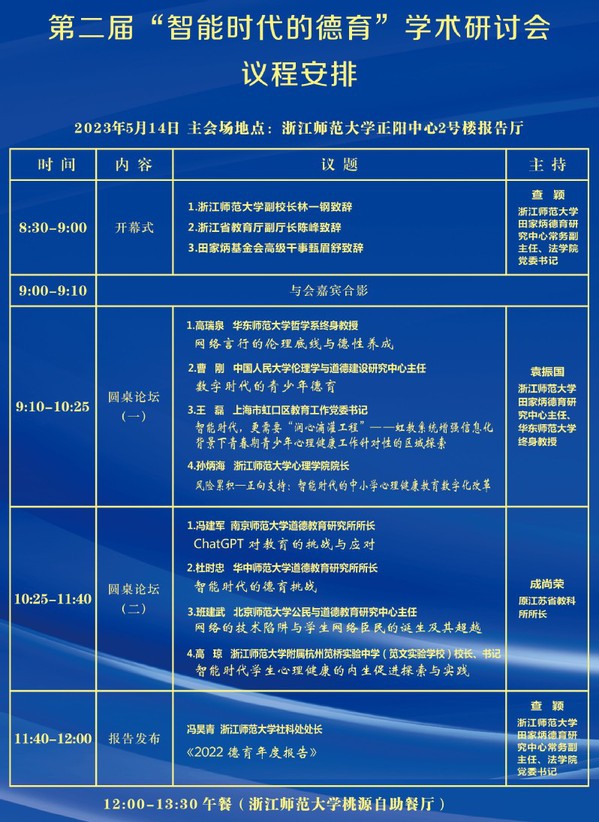 第二届“智能时代的德育”学术研讨会 时间:8:30-16:30 地点:正阳中心2号楼报告厅 主讲: