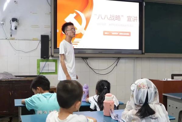 今年是八八战略实施20周年,“经彩筑梦”实践队为追寻习近平总书记在浙江走过的足迹、搫画的印记、牵挂的心迹,实地寻访温州和义乌地区部分民营企业在“八八战略”引领下的创业创新发展历史,参观红色教育基地,切身感悟“八八战略”实施二十年来浙江发生的全方位、系统性、重塑性精彩蝶变。 01 循迹调研感悟蝶变 “经彩筑梦”实践队前往义乌和温州共四家企业实地调研。访谈过程中,实践队员们积极和企业对接人员了解企业发展状况,畅谈“八八战略”带给企业的机遇与启发,感悟浙江“敢为天下先”的锐气和“弄潮儿向涛头立”的风采。 通过实地调研和访谈,实践队员们真正深刻体会到“八八战略”所具有的指引作用,感受到浙江伴随新时代的恢弘发展画卷渐次展开,伴随新一轮的改革开放浪潮奔腾而来,坚定不移沿着“八八战略”指引的路走下去。 02 党建引领夯实根基 为推动实施“红色根脉强基工程”见行见效,提升实践队员们的政治信仰力,“经彩筑梦”实践队前往参观龙湾革命教育馆,感悟学习龙湾人民的奋斗史与发展史。此外,“经彩筑梦”实践队以“循迹溯源学思想,红色根脉促践行”为主题,开设党史小课堂、录制微党课视频。 实践队员们在新征程上续写好“八八战略”这篇大文章,奋楫扬帆、砥砺前行,传承好习近平总书记留在浙江的宝贵财富,把握马克思主义基本原理同浙江实际相结合的时代创举,努力成长为担当民族复兴大任的时代新人。 03 红色宣讲增强认识 为宣扬“八八战略”在浙江发挥的重要指导作用,着力打开科学思想转化为真理力量的通道,让“八八战略”持续展现思想伟力和时代价值,实践队员们在武义县大田乡古竹中心小学开展“八八战略”宣讲活动,在孩子们心里悄悄种下一颗红色的种子。 在实地调研企业的过程中,实践队员们充分利用闲暇时间,分发“八八战略”宣传单,向周边商圈的店家和往来的消费者介绍“八八战略”。 学思想、强党性、重实践、建新功。“经彩筑梦”实践队队员们求真务实,在求深、求实、求细、求准、求效上下功夫,努力践行新时代社会主义核心价值观,谨记习总书记“干在实处、走在前列、勇立潮头”的重要讲话,在实践中体察感悟“八八战略”实施的前瞻性和实用性,不断增进对习近平新时代中国特色社会主义思想的政治认同、思想认同、理论认同、情感认同,努力成长为担当民族复兴大任的时代新人。