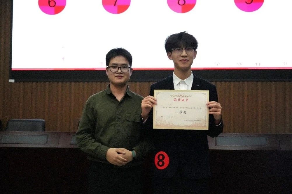 11月3日晚,物电学院2023级新生演讲赛决赛在20幢一楼报告厅举行。团委书记兼学工办主任郭栋梁、学工办辅导员丁书亚作为本次比赛嘉宾出席,并邀请了优秀的学长学姐担任演讲赛的评委。 备稿演讲环节 裘奕洋同学站在舞台中央,他以“生生不息的激荡”为题,讲述了一位生活简朴的乡村教师悉心照顾帕金森妻子的故事。对“何为幸福”这个问题给出了最好的诠释——让蓬勃的生命力贯穿生活的点点滴滴,让生活的每一秒都充实无比。 “高高的青山上,萱草花开放。采一朵,送给我,小小的姑娘……” 在悠扬舒缓的旋律与温柔的哼唱中,孟江艳同学缓缓地走向舞台中心。她讲述了自己一个来自偏远贫苦地区发小的故事,展现了偏远地区孩子积极向上,永远满怀希望的乐观主义精神。其他选手也充分发挥语言的力量,用一个个故事描绘绚烂青春,向观众和评委传递了自信自强的信念! 即兴演讲 各位选手准备十分充分,精彩地完成了备稿演讲。在接下来的即兴演讲环节中,每位选手针对自己随机抽取到的主题素材,能够做到沉着冷静地思考,提炼出素材的主干内容,层层推进,出色地完成了即兴演讲,展现出了优秀的语言组织能力和丰富的知识储备。 评委点评 评委王润泽学长和张佳乐学姐分别对参赛选手的表现进行了点评。两位评委都肯定了选手们的精彩发挥和赛前做的充足准备。同时,结合自身演讲经历,对参赛选手提出了宝贵建议,比如要注意尖音、拖音、错音等口音问题,演讲时的语调、停顿问题,同时,也强调了选手们接下来可以多注意自身的形体仪态。 颁奖仪式 在评委根据各位选手的表现进行综合打分后,参赛选手的最终得分浮出水面。 获奖名单如下: 一等奖:裘奕洋 二等奖:布艳丽 李泓葳 潘景景 三等奖:蒲文欣 代云南 孟江艳 朱佳怡 陈乐怡 (荣获一等奖的选手) (荣获二等奖的选手) (荣获三等奖的选手) 2023级新生演讲赛已圆满结束,愿同学们皆怀揣自信自强的赤子之心,用激昂的青春致敬亲爱的祖国,自信自强启新程,热情热血献青春! (演讲队全体队员) 来源:浙江师范大学物理与电子信息工程学院 编辑:谢奕琴 |